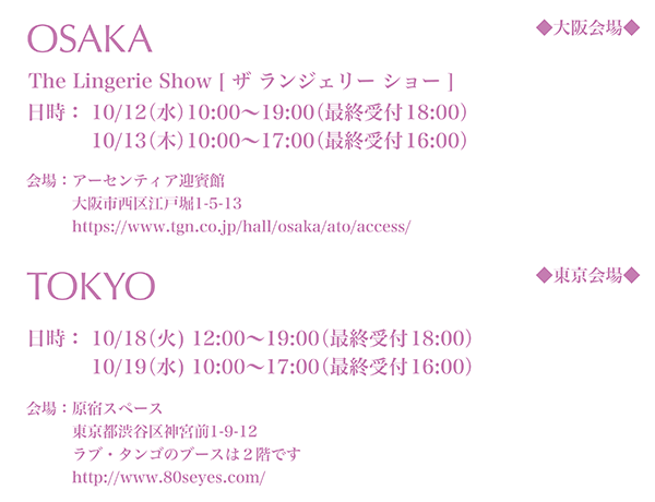 会場:渋谷区神宮前1-9-12 Love Tangoのブースは2階です |
